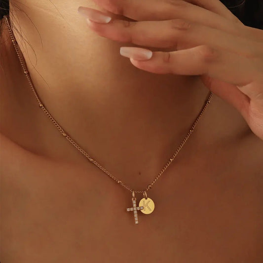 Clay Initial Cross Necklace